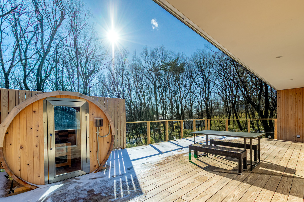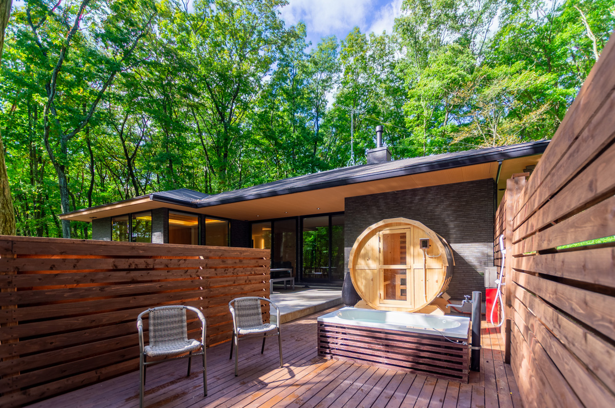 森のバレルサウナでととのう|リゾートハウス(もみじヶ丘139)